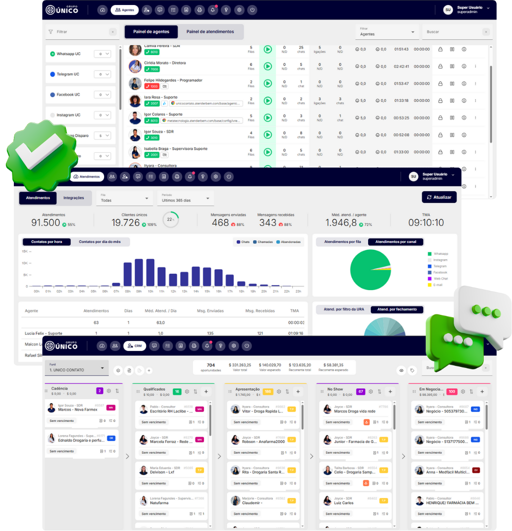 A Único Contato é uma plataforma completa de automação e gestão de atendimento, que une CRM, PABX, Webchat e redes sociais em um só lugar. Tudo isso com dashboards estratégicos, fluxos inteligentes e integração com sistemas como ERPs.